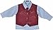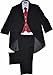 Black fully lined single breasted tails suit jacket. Shows pocket details at front on jacket. Button detail on the cuffs and single button fastening on front of jacket. Wine check design fully lined waistcoat with silver stitching detail. Three button fastening at front and adjustable slide at rear. Shows pocket detail on front of outfit and satin effect panel on rear. Black matching suit trousers. Shows pocket detail at the front and button fastening on the elasticated waist line with belt loops. White long sleeved shirt with stiff collar and button fastening at front and on cuffs. Little wine cravat with silver check stitching design. Tiny diamante effect stud on knot. Easy Velcro fastening at rear. Read more